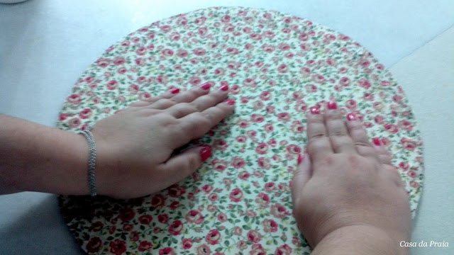 Este é o passo a passo de um sousplat feito de papelão e tecido.